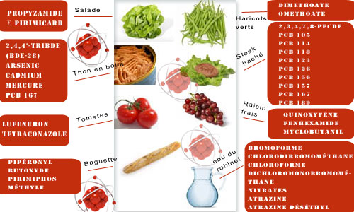 Selon une étude du mdrgf* de 2010, 128 résidus chimiques ont été recensés dans un menu d’une journée (dont une bonne partie suspectée d’être cancérogènes ou perturbateurs endocriniens)
